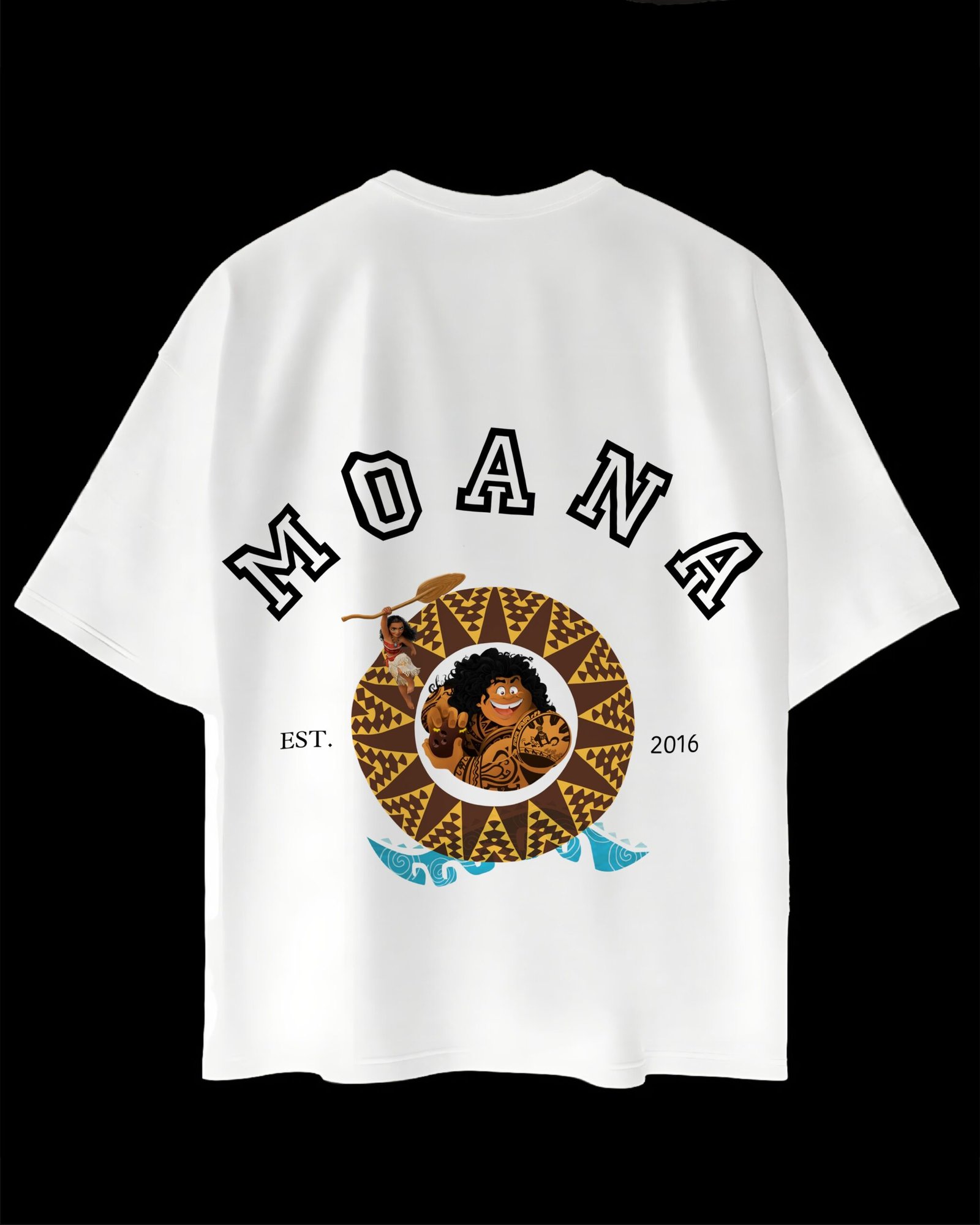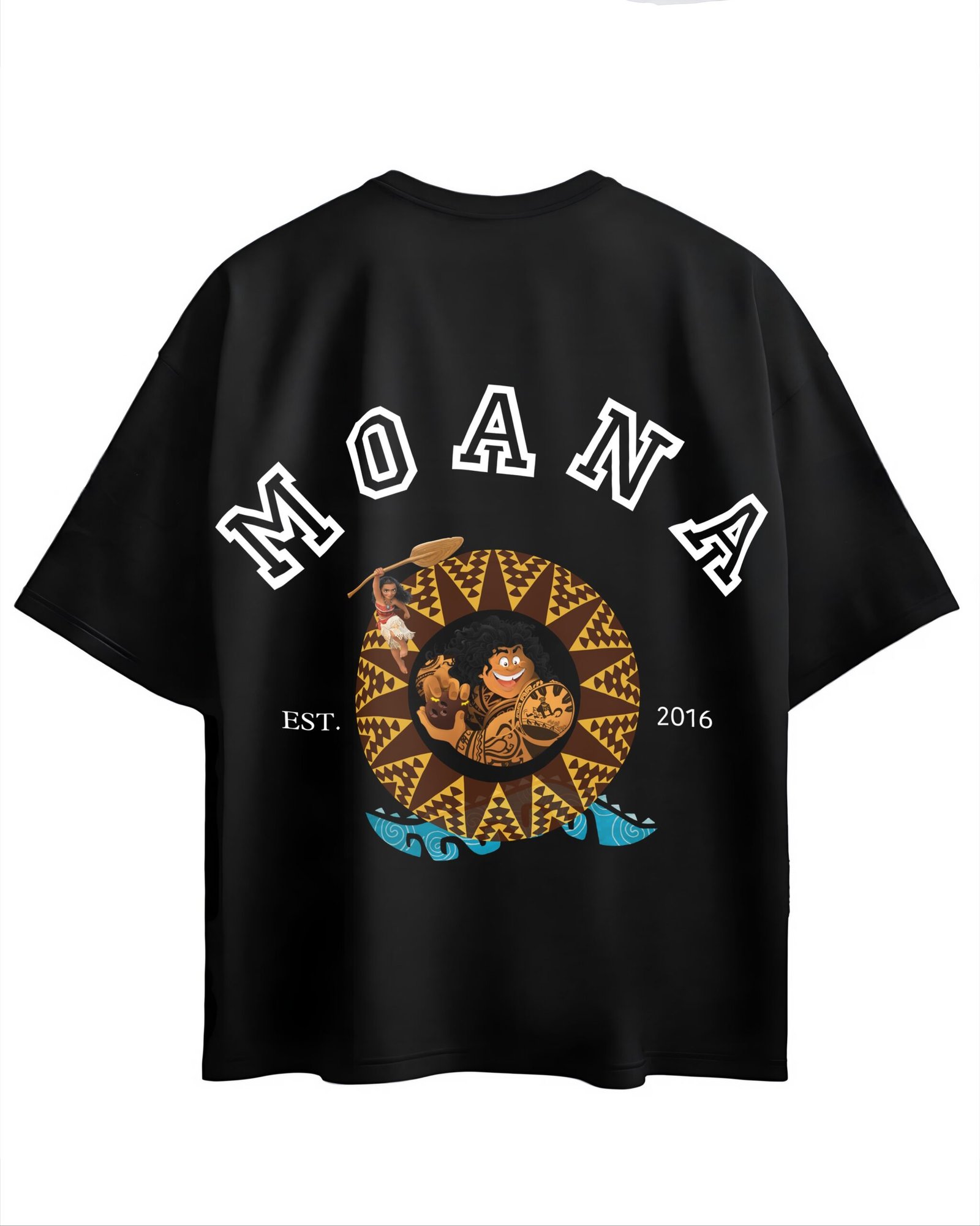 Design: Front print featuring Moana in multiple poses with Disney Moana logo