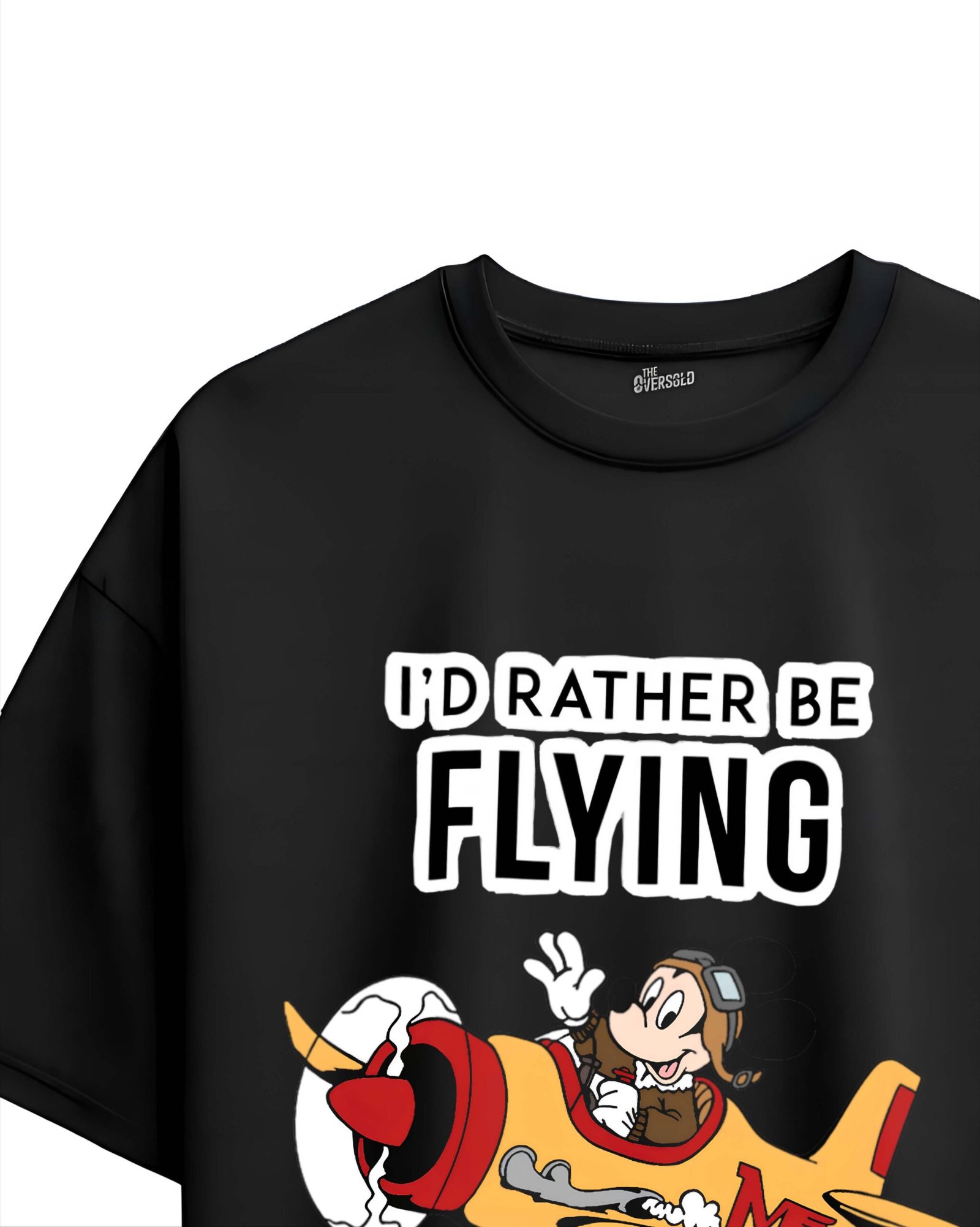 Add some fun and adventure to your wardrobe with this bold oversized black T-shirt featuring a playful cartoon-style pilot flying a colorful airplane. The vibrant artwork and the slogan “I’d Rather Be Flying” make it a perfect pick for aviation lovers, travel enthusiasts, and anyone with a fun, carefree personality.