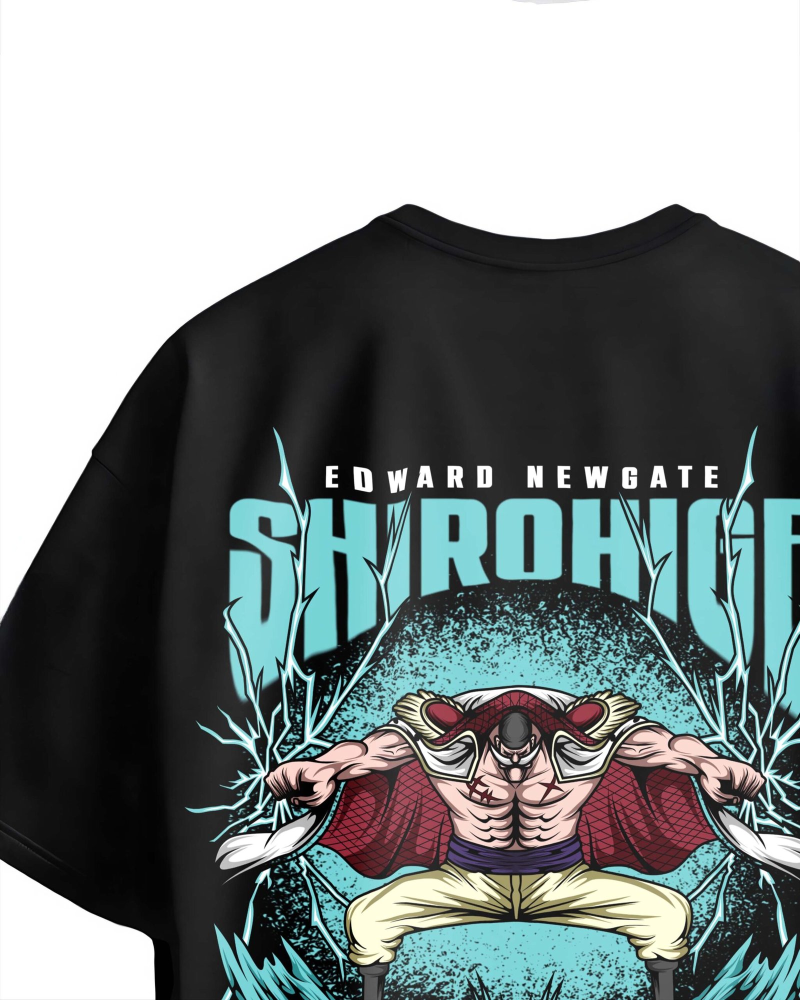 Level up your streetwear with this bold Shirohige (Edward Newgate) oversized T-shirt, inspired by one of the most iconic characters from the anime world. The back features a high-detail graphic illustration of Shirohige unleashing his immense power, surrounded by dynamic energy effects and striking typography.